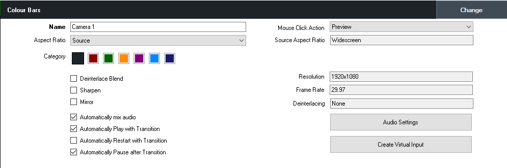 Click Change to change the source of this input while preserving all settings including colour adjustments, chroma key, position and multi view.