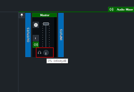 4. From vMix, go to the Audio Mixer and turn down the headphones volume to 0.